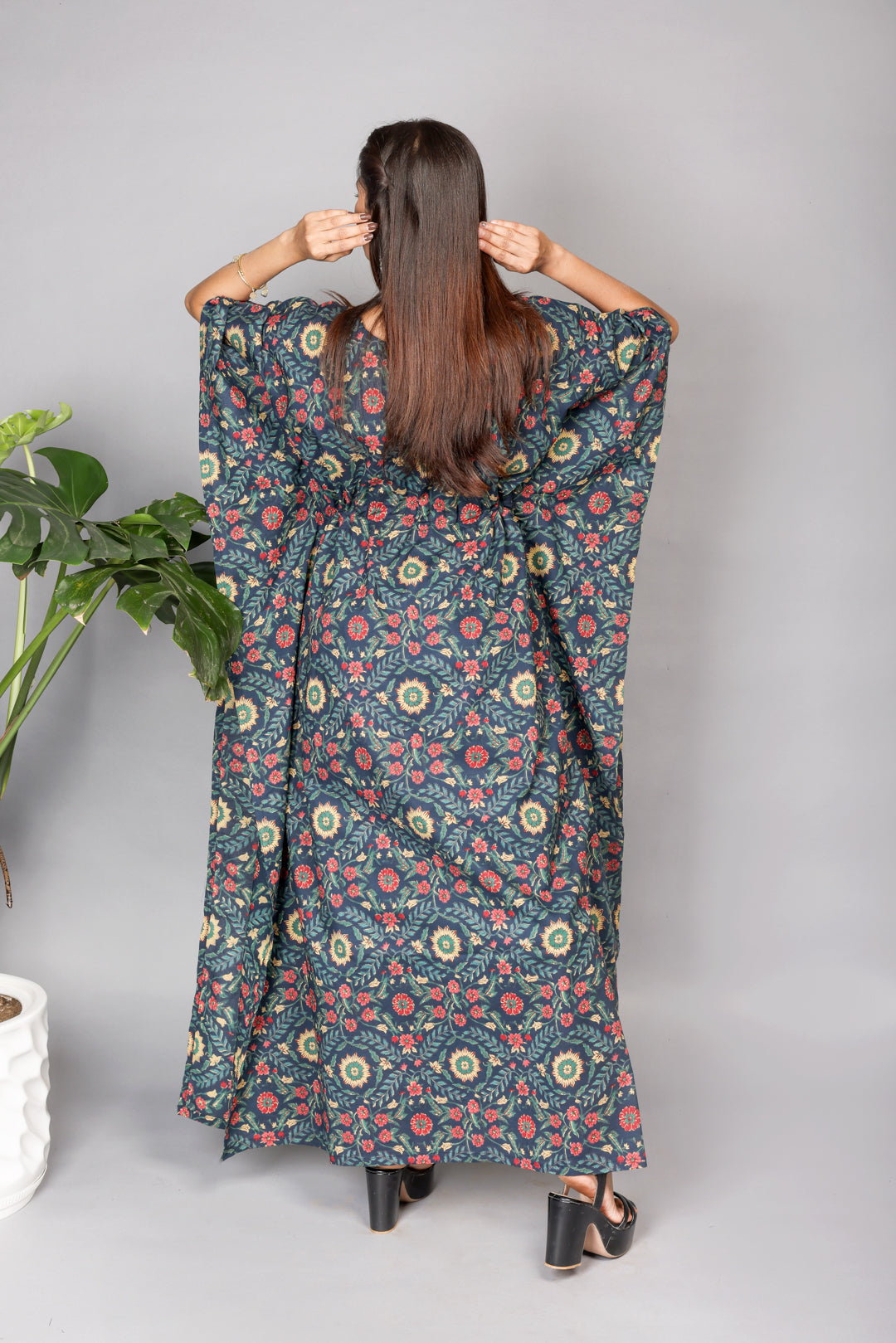 - Sleeves: Kaftan sleeves for a relaxed fit