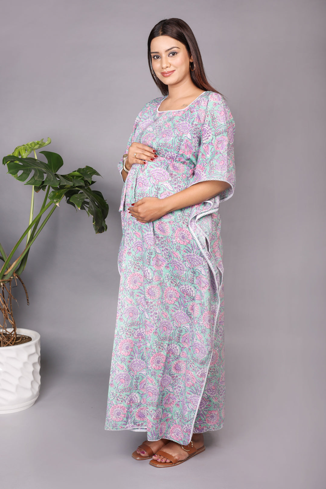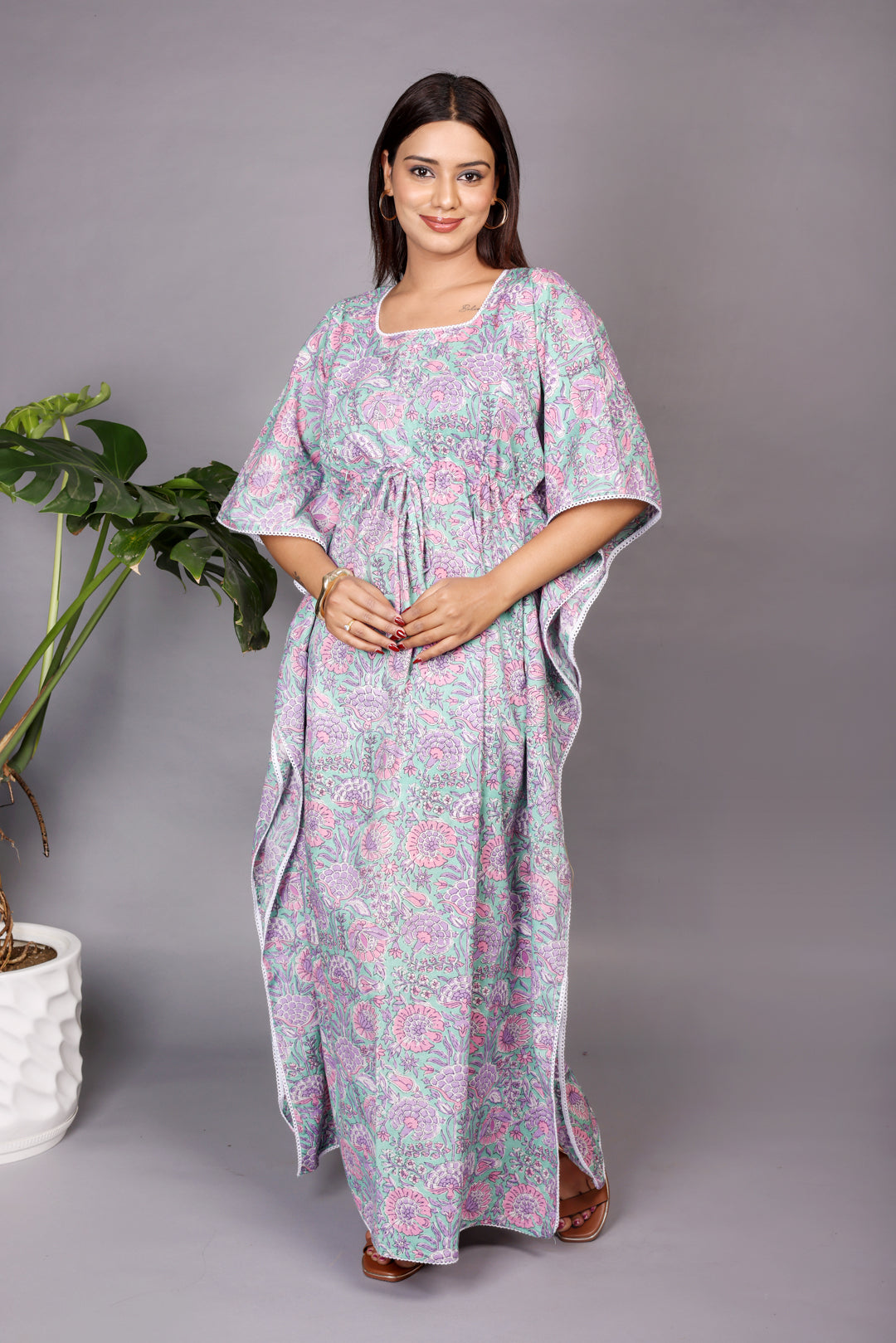 - Versatile Design: The kaftan style and adjustable drawstring waist make this kaftan suitable for both pregnancy and postpartum wear.