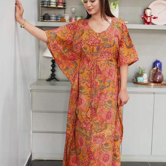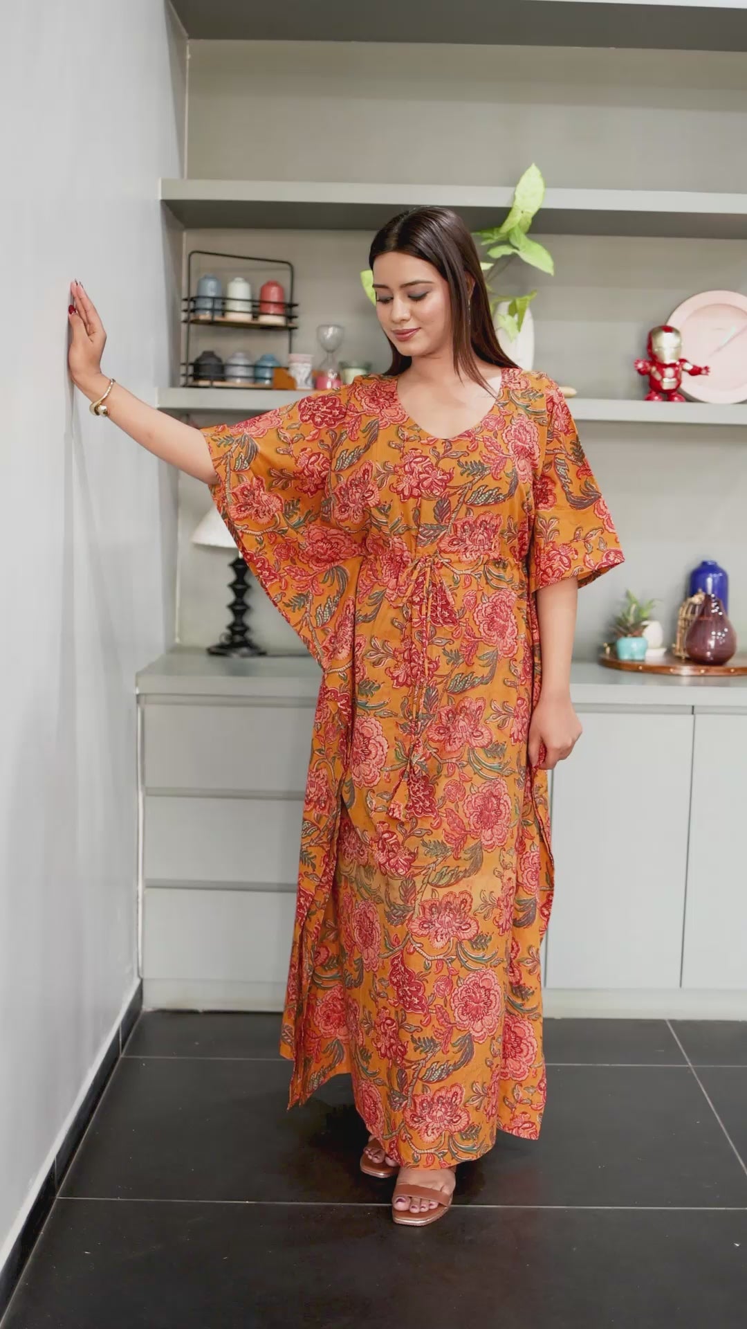 Embrace motherhood in full bloom with our "Blossom" Floral Maternity & Nursing Kaftan. This vibrant, mustard yellow kaftan is adorned with a beautiful all-over floral print, designed to make you feel comfortable and stylish throughout your pregnancy and beyond.