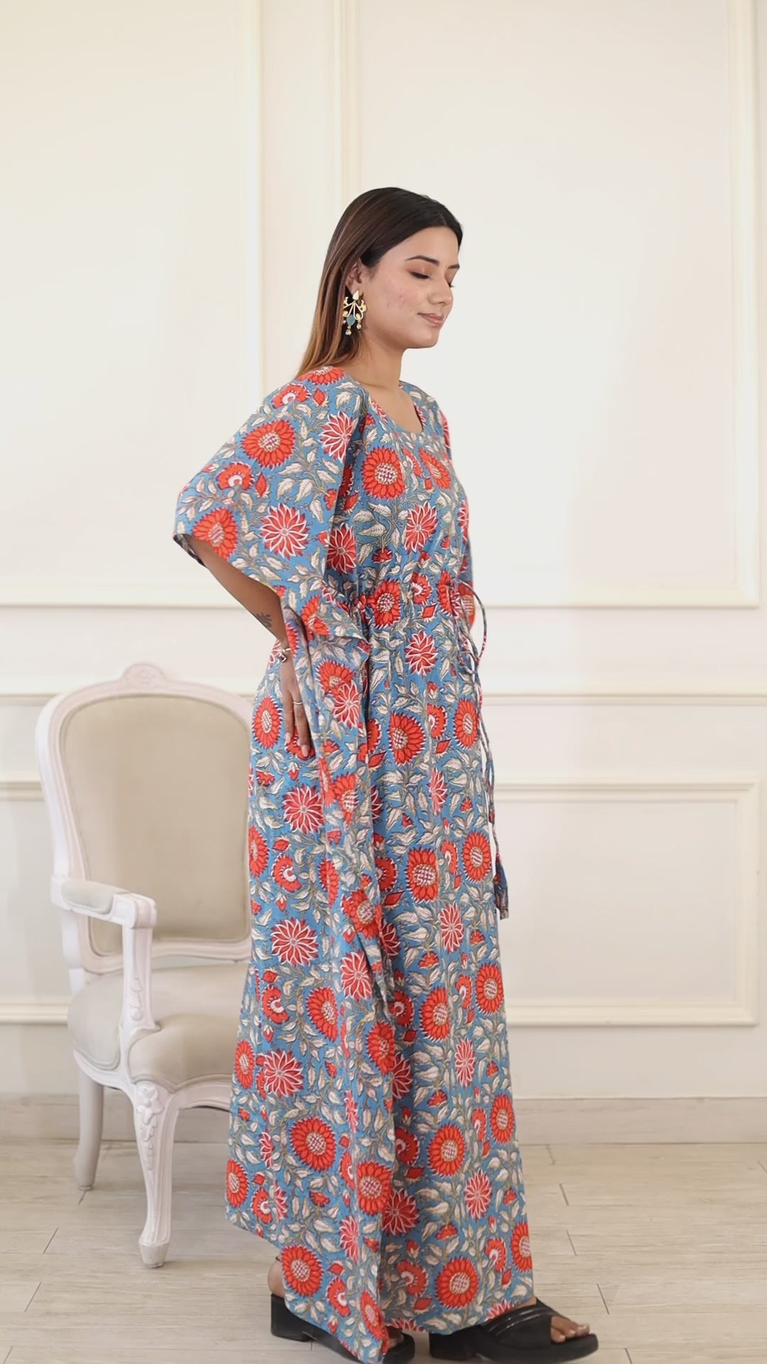 • Versatile Design: The kaftan style and adjustable drawstring waist make this kaftan suitable for both pregnancy and postpartum wear.